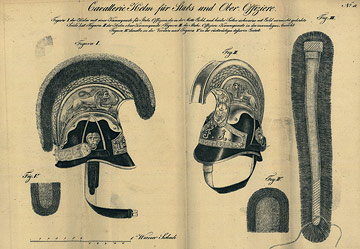 Nacrt Kaciga – Cavallerie Helm für Stabs und Ober Offiziere, 1828. Litografija Vel. 369 x 542 mm Rijeka, DAR 022, spis 426/828