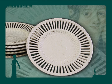 Tanjuri, keramika (kamenina), Tvornica Santini-Sinibaldi, Trst, 1784.–1808.(?), promjer 245 mm (CMSA, Trst, inv. 7000, 7002, 7003, 7004, 7005, 7006)