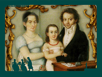 Maria Margherita Polissena Anna Giustina, rođena Zanchi, udana Abriani, (Barcola [Trst] 1. prosinca 1776.–1863./65.), portret, sa suprugom Paolom Fabriziom (Padova 1786.–1823.) i kćeri Reginom (rođena 1813.), tempera na slonovači, Austrija ili sjeverna Italija, oko 1820., 200 x 235 mm (CMSA, Trst, Miniature ritratto di Maria Margherita Polissena Anna Giustina in Abriani nata Zanchi (Barcola (Trieste) 1 dicembre 1776-1863/65), con il marito Paolo Fabrizio Abriani, (Padova 1786-1823) e la figlia Regina Abriani (nata nel 1813), 1820 circa |