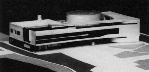 Prvi arhitektonski natječaj na koji se Andrija Čičin-Šain u Sarajevu odaziva jest natječaj za Kulturno-društveni centar 1951. godine. Zadatak je natječaja napraviti idejne skice za rekonstrukciju bivšega židovskog hrama u kulturni centar s reprezentativnom kinodvoranom, klupskim i izložbenim prostorijama, kavanom i barom te stambenim prostorima. Od osamnaest prijavljenih radova, među kojima su i radovi M. Haberlea i H. Bauera, Čičin-Šain u suradnji s arhitektom Vinkom Jurićem osvaja treću nagradu.