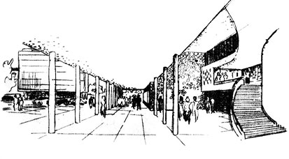 Natječajnim zadatkom zahtijevalo se, uz arhitektonsko, i urbanističko rješenje okolnog prostora kao javnog trga. U tome se rad Čičin-Šaina pokazuje iznimno kvalitetnim i inovativnim. Čičin-Šain uvlači trg u zgradu uzdignutu na stupove i time stvara jedinstvenu i kontinuiranu pješačku plohu. Dobiven je prostor dvojakog značenja: možemo ga čitati kao vanjski prostor grada (trg ili ulicu) i kao unutarnji prostor zgrade (atrij, predvorje dvorana ili kavane).