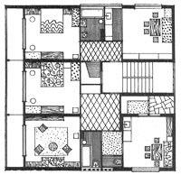 Pored džamije na Điđikovcu u Sarajevu, Čičin-Šain gradi tri stambena objekta. Dva niža objekta kubična oblika s četveroslivnim krovom, polukružno povezana kamenim prizemljem koje prema ulici preuzima funkciju zida, stilski se opet oslanjaju na tradicijsku gradnju te su na tragu kuće u Konjicu. Treći objekt daje vertikalni akcent čitavom kompleksu, čistog je stereometrijskog oblika bez stilskih referencija, artikuliran jedino horizontalnim nizovima prozora i balkona. Neobičan, ali iznimno skladan spoj.