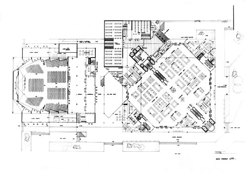 Od novoga Doma Radničkog sveučilišta, za koji je 1955. objavljen natječaj, očekivalo se da obuhvati raznovrsne sadržaje, uz obrazovne (učionice i knjižnice), pored ostalog i veliku i malu dvoranu za kulturne programe i filmske projekcije.