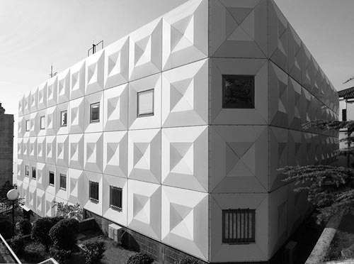 TT centar u Puli izveden je kao prigradnja u strogo zadanim gabaritima, koja s ranije izgrađenim objektom čini trokutni otok. A "nevidljiva" neožbukana betonska pročelja s malobrojnim otvorima, presvučena su "prefabriciranim" rasterom s velikim zatamnjenim staklenim stijenama.