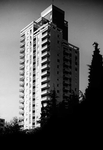 Visoke je nebodere razrađivao tek u kasnijim natječajnim prijedlozima, poput onoga za "tipske stambene tornjeve" i za "stambene tornjeve u Rijeci" (oba projekta s Dragomanovićem i oba prvonagrađena, 1960.), Vulkanov neboder na Grčevu, u istočnom dijelu Rijeke (1972.) s osamdeset stanova, podosta je osebujan i izražajan. Iako je rješenje s efektno izvedenom "visinskom razlikom" pojedinih dijelova zgrade odavno poznato, ipak nije prečesto korišteno a ovaj je toranj svakako najizrazitiji tih godina u Rijeci.